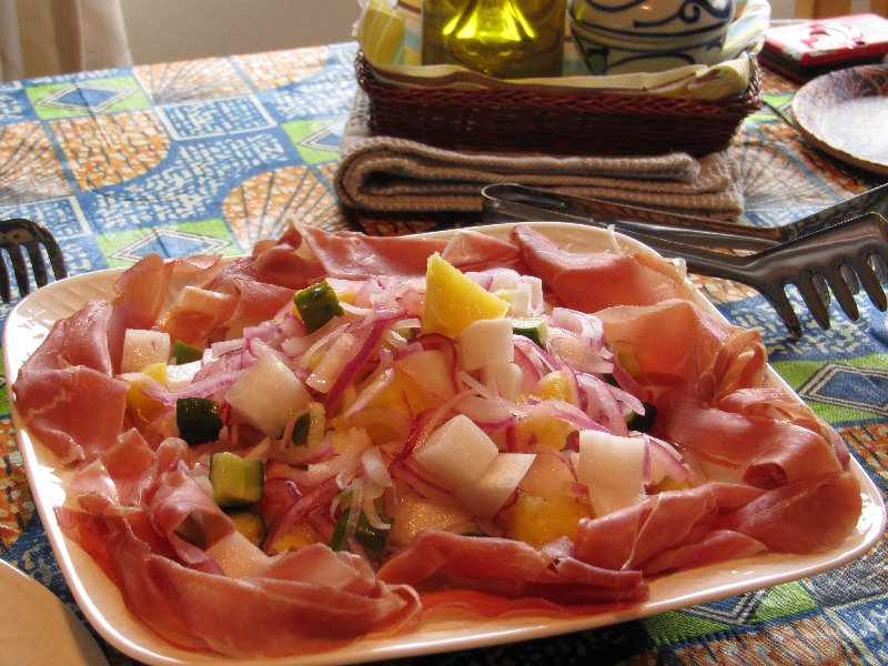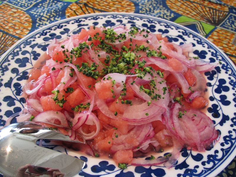 ・ズッキーニのスープ・モヒート・すいかと玉葱のサラダ・トートマンプラー・コシャリ・ビーフラッピング・飴色ポテト