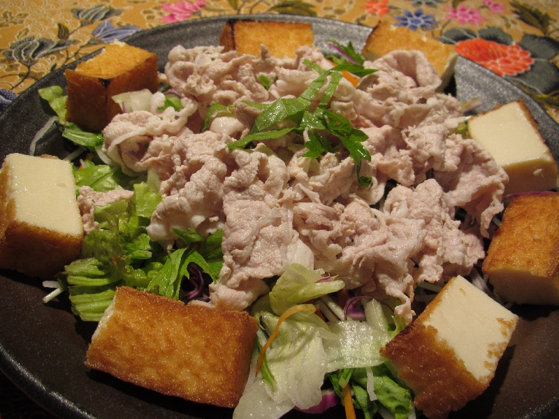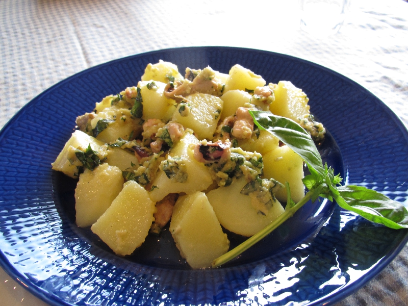 空豆のスープ・モッツァレラチーズのホットサンドイッチ・タコとじゃが芋のジェノバソース・ポークのロラーデン・クミンライス・エッグレスケーキ