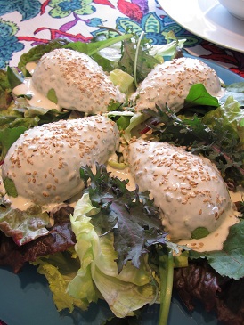 ・オニオンスープ・人参とピスタッチオのサラダ・スタッフドエッグ・ヨーグルトカレー・ガレット