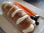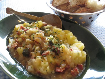 空豆のスープ・モッツァレラチーズのホットサンドイッチ・タコとじゃが芋のジェノバソース・ポークのロラーデン・クミンライス・エッグレスケーキ