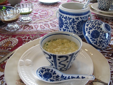 タマリンドークーラー・白葱とオートミールのスープ・ビーンズとオリーブのサラダ・