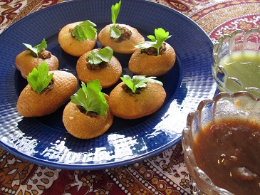 チキンコーンスープ・ゴルガッパ(パニープーリー)・パイナップルサラダ シェパードパイ・