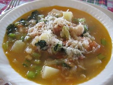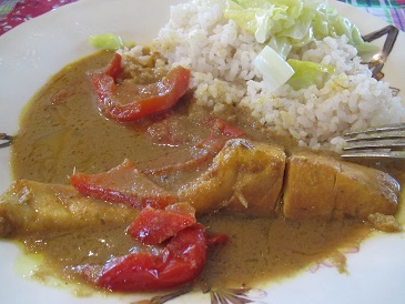 ミネストローネ・スパイス風味のベークドポテト・ニョニャ フィッシュカレー・キャベツのナムル・チョコレートのクレープ