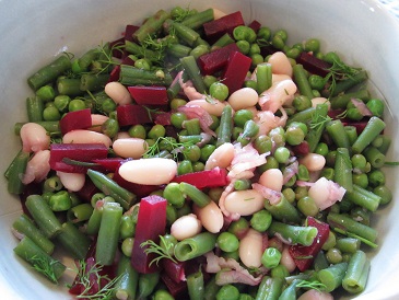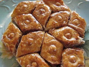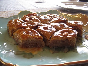 ビーフティ・豆とビーツのサラダ・じゃが芋とキノコのヴァレーニキ・キャベツと人参のピクルス・玄米ご飯・パクラヴァ