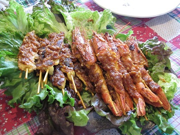 ソリヤンカと黒パン(ロシア)・海老と豚肉のサテー・ツナとセロリとパセリのディップ・カイザーシュマーレン